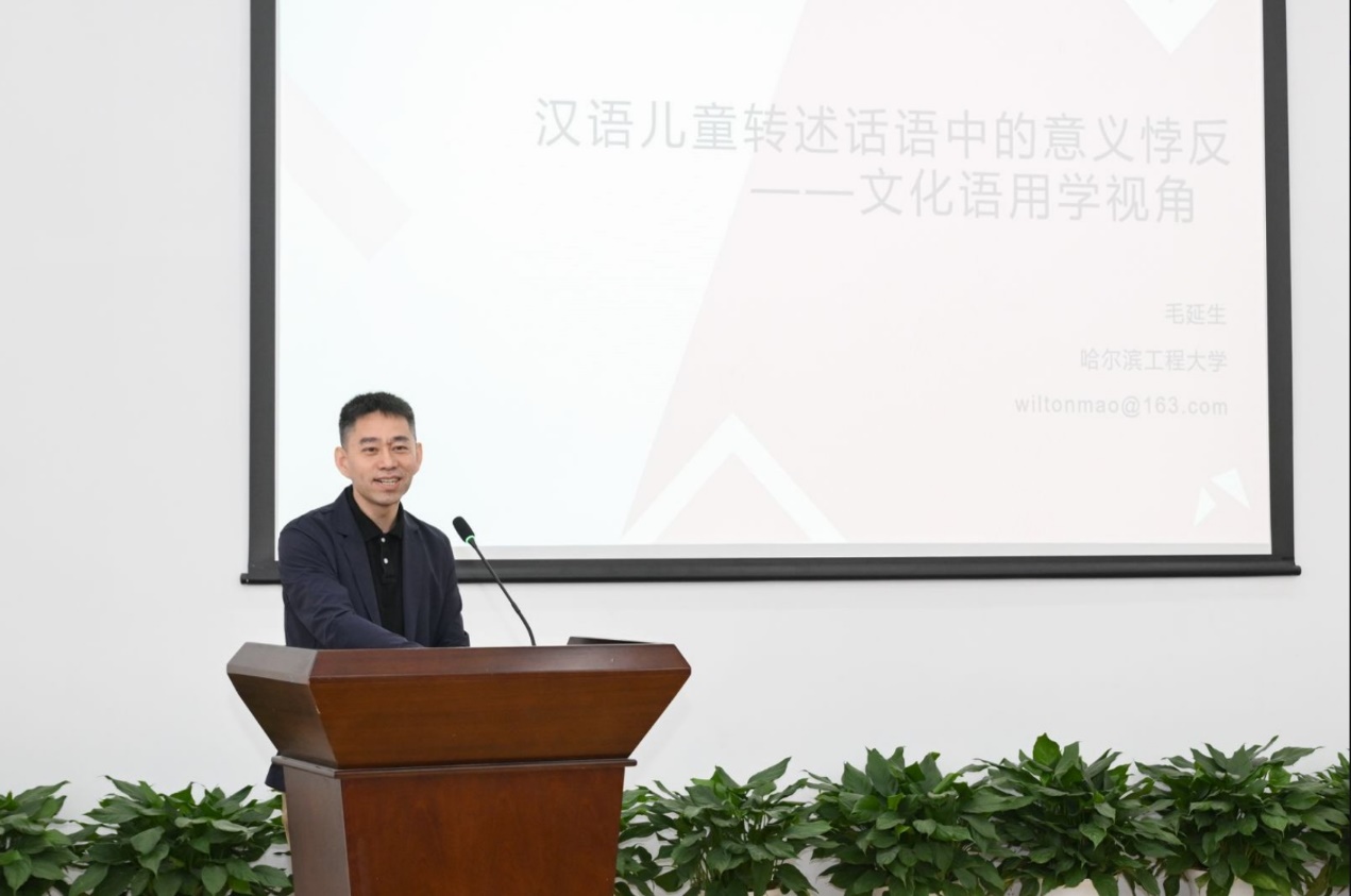 Am 20. April vormittags setzte das Symposium die Reihe der Fachvorträge fort: Professor Feng Guangwu von der Guangdong University of Foreign Studies präsentierte in seinem Vortrag „Kulturwissen und pragmatische Inferenz“ ein hörerzentriertes Modell pragmatischer Schlussfolgerungen auf der Grundlage kulturellen Wissens, das der Pragmatikforschung neue Perspektiven eröffnet. Professorin Huang Ping von der Heilongjiang University untersuchte in ihrem Beitrag „Mehrdimensionale Interpretation des Sprachlebens älterer Menschen aus der Perspektive der kulturellen Pragmatik“ die Sprachwirklichkeit der älteren Generation durch eine kulturpragmatische Brille und zeigte Lösungsansätze für sprachlichen Verfall und Abbauprozesse im Kontext des demografischen Wandels auf. Professor Mao Yansheng von Harbin Engineering University analysierte in seinem Vortrag „Bedeutungsparadoxien in der Berichterstattung chinesischer Kinder – Eine kulturpragmatische Perspektive“ das Phänomen widersprüchlicher Bedeutungszuschreibungen in kindlichen Erzählungen. Seine Forschung liefert nicht nur neue Erkenntnisse für die Sprachentwicklungsforschung, sondern auch pragmatische Grundlagen für klinische Diagnostik und unterstützende Rehabilitation bei Kindern mit besonderen Bedürfnissen. Professorin Han Geling von University of Shanghai for Science and Technology untersuchte in ihrem Vortrag „Sprechakte und pragmatische Entwicklung chinesischer Kinder“ durch Fallstudien und experimentelle Forschungen die Entwicklungsmuster pragmatischer Kompetenz bei chinesischsprachigen Kindern sowie den Einfluss familiärer soziokultureller Faktoren. Ihre Arbeit bietet wertvolle Referenzen für Sprachförderung und Kommunikationskompetenztraining im digital-intelligenten Zeitalter. Die neun facettenreichen Hauptvorträge bereicherten die Teilnehmer mit vielfältigen akademischen Denkansätzen und Forschungsperspektiven und trugen wesentlich zum Erfolg der Tagung bei.