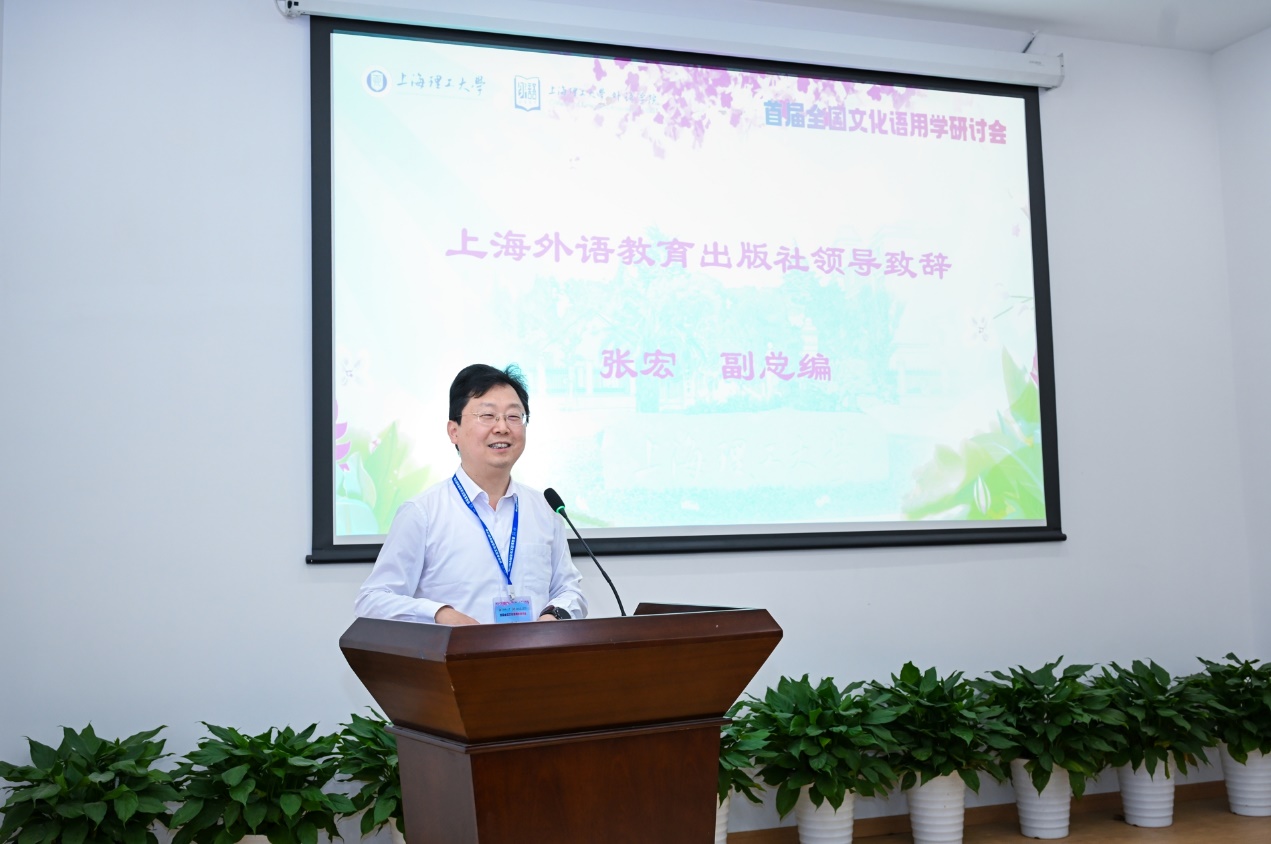 Am Vormittag des 19. April fand die Eröffnungsfeier des Symposiums im Hörsaal des Fremdsprachengebäudes von University of Shanghai for Science and Technology statt. Die Eröffnungszeremonie wurde von Liu Qin, der Dekanin unserer Fakultät und Vizepräsidentin von Shanghai International Studies Association, moderiert. Vizerektorin Cai Yonglian hielt die Begrüßungsrede, in der sie dem Symposium ihre herzlichsten Glückwünsche aussprach und den anwesenden Gästen ein warmes Willkommen entbot. Sie betonte die besondere Bedeutung der Erforschung kultureller Pragmatik im Zeitalter der künstlichen Intelligenz. Zhang Hong, stellvertretender Chefredakteur des Shanghai Foreign Language Education Press, hielt eine Ansprache, in der er in geistreicher und anregender Form auf die Schlüsselrolle der kulturellen Pragmatik für die Transformation interdisziplinärer Forschung in den Fremdsprachenwissenschaften hinwies. Besonders unterstrich er deren wichtigen Wert im chinesischen Kontext.